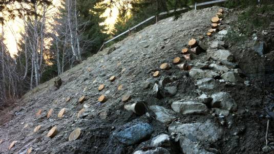 Forstlich gesehen werden zur Stabilisierung von Rutschungen alle genannten Punkte mit seltener Nutzung von Punkt 3 angewendet.