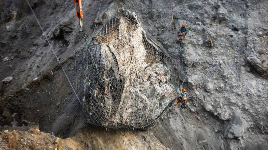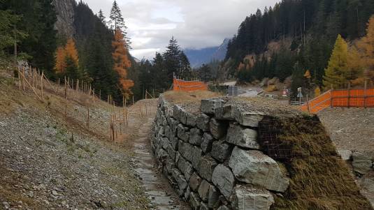 Stein- und Blockschlägen können in ihrer Sturzbahn mit Ablenkdämmen, Netzvorhängen, Attenuator Systemen oder Galerien vom Schadenpotenzial abgelenkt werden.